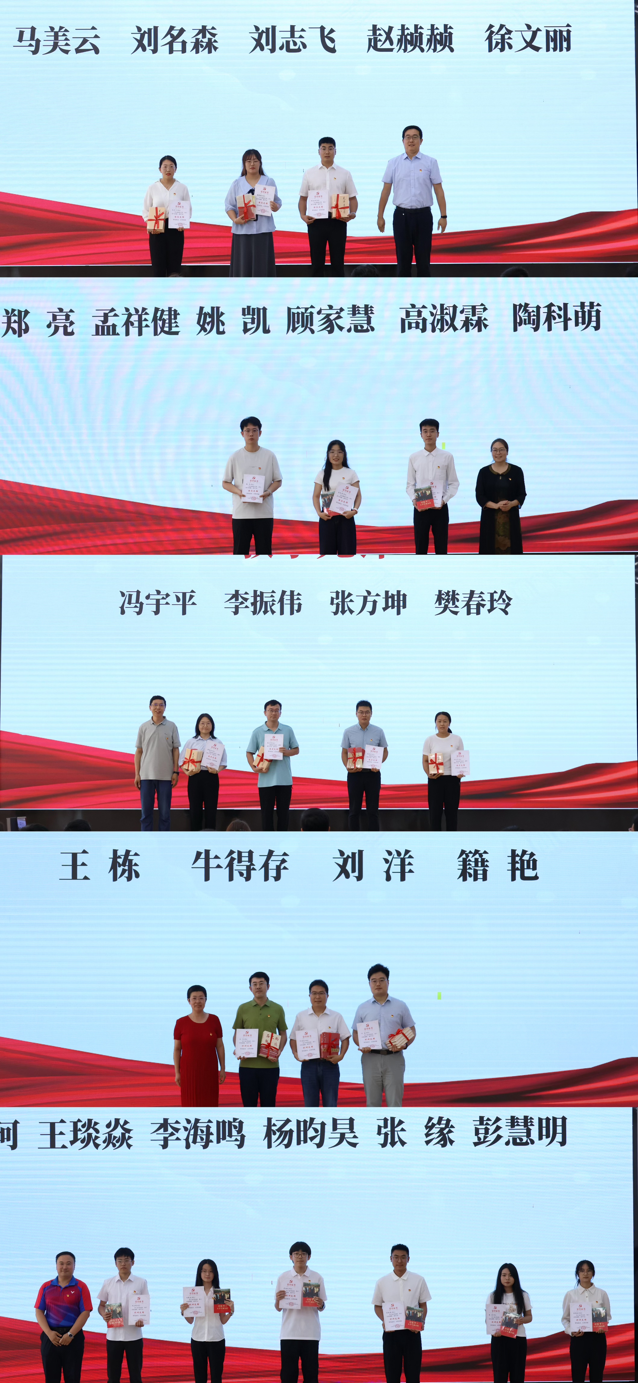 大会对党员先锋进行了表彰。王磊、李卉、张伟、生宁、张典分别为获奖的服务先锋、教学先锋、科研先锋颁奖。
