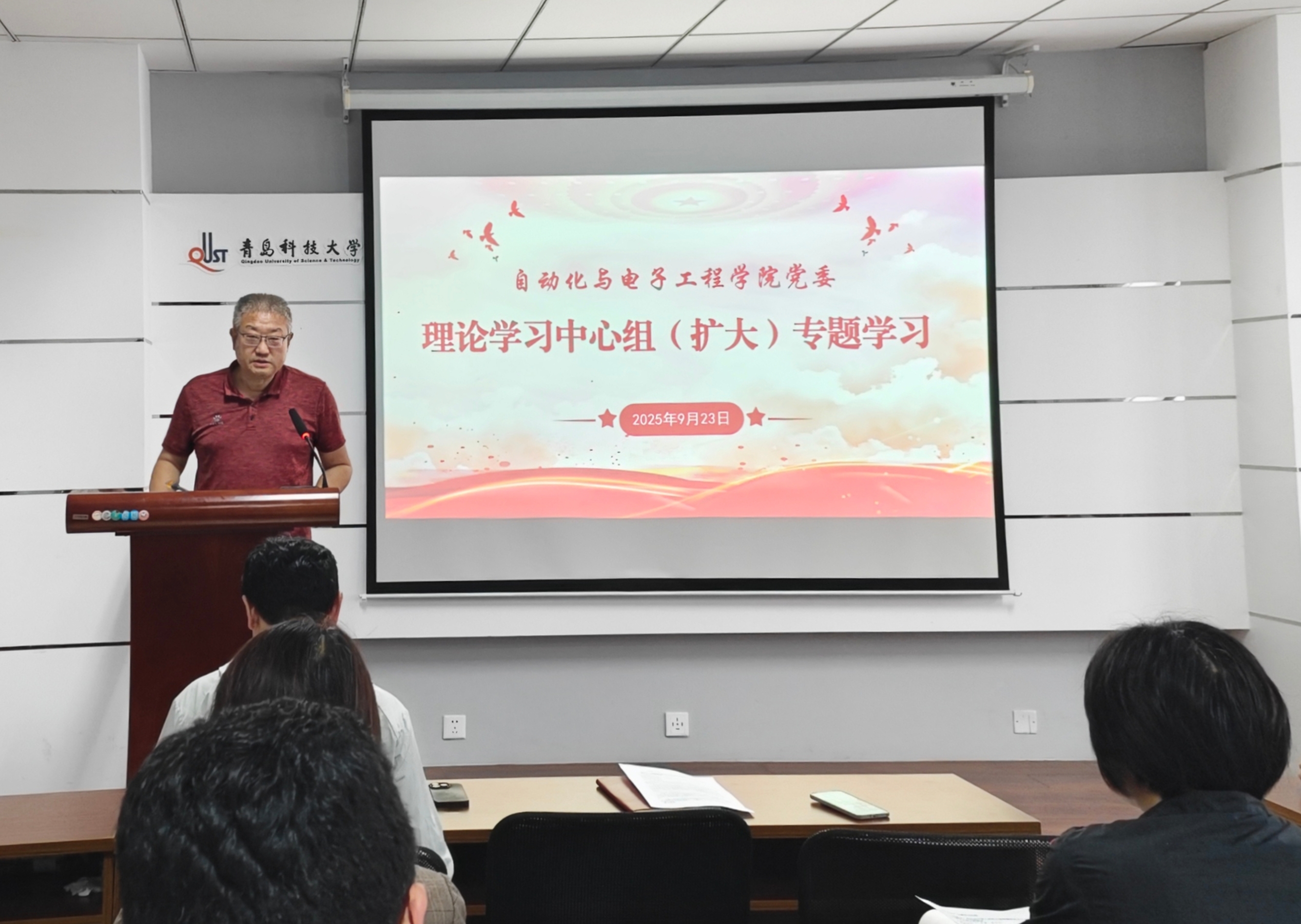 9月23日,自动化与电子工程学院党委理论学习中心组(扩大)学习会议在学院楼410会议室召开。学院党委书记郭永主持理论学习中心组专题学习。学院党政领导班子成员、各党支部书记参加会议。