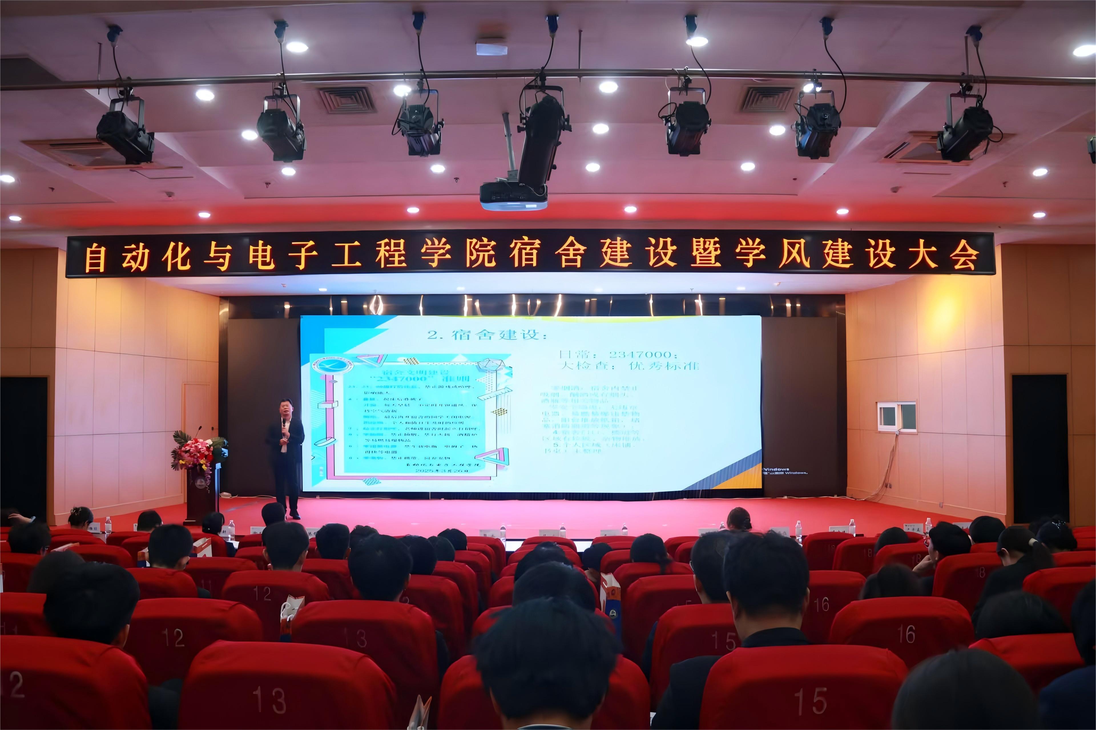 大会回顾总结了上半年学院在宿舍建设方面采取的工作措施和取得的成效。通过全院师生的共同努力,宿舍环境、安全和文化氛围取得进步,营造了平安、健康、和谐、文明的宿舍风气,为学生的健康成长提供了有力保障。在学风建设方面,大会通报了学院学子在各类学科竞赛中取得的优异成绩,获奖层次和数量均创历史新高,充分彰显了学院学子们扎实的专业基础和勇于创新的精神风貌。刘名森最后提出要求,希望全体学生干部在其位,谋其政,履职尽责,提高站位,关注同学动态,深刻认识安全工作的重要性,守牢安全底线。在宿舍建设方面,持续巩固已有成果,自觉遵守宿舍管理规定,共同维护整洁、优雅、和谐的生活环境。在学风建设方面,积极带动、组织同学参加学科竞赛,营造比、学、赶、帮、超的良好学习风气。争先创优,展现“自动化人”形象,以实际行动践行“胸怀祖国、自立自强、协同创新、追求卓越”的“自动化人”精神。