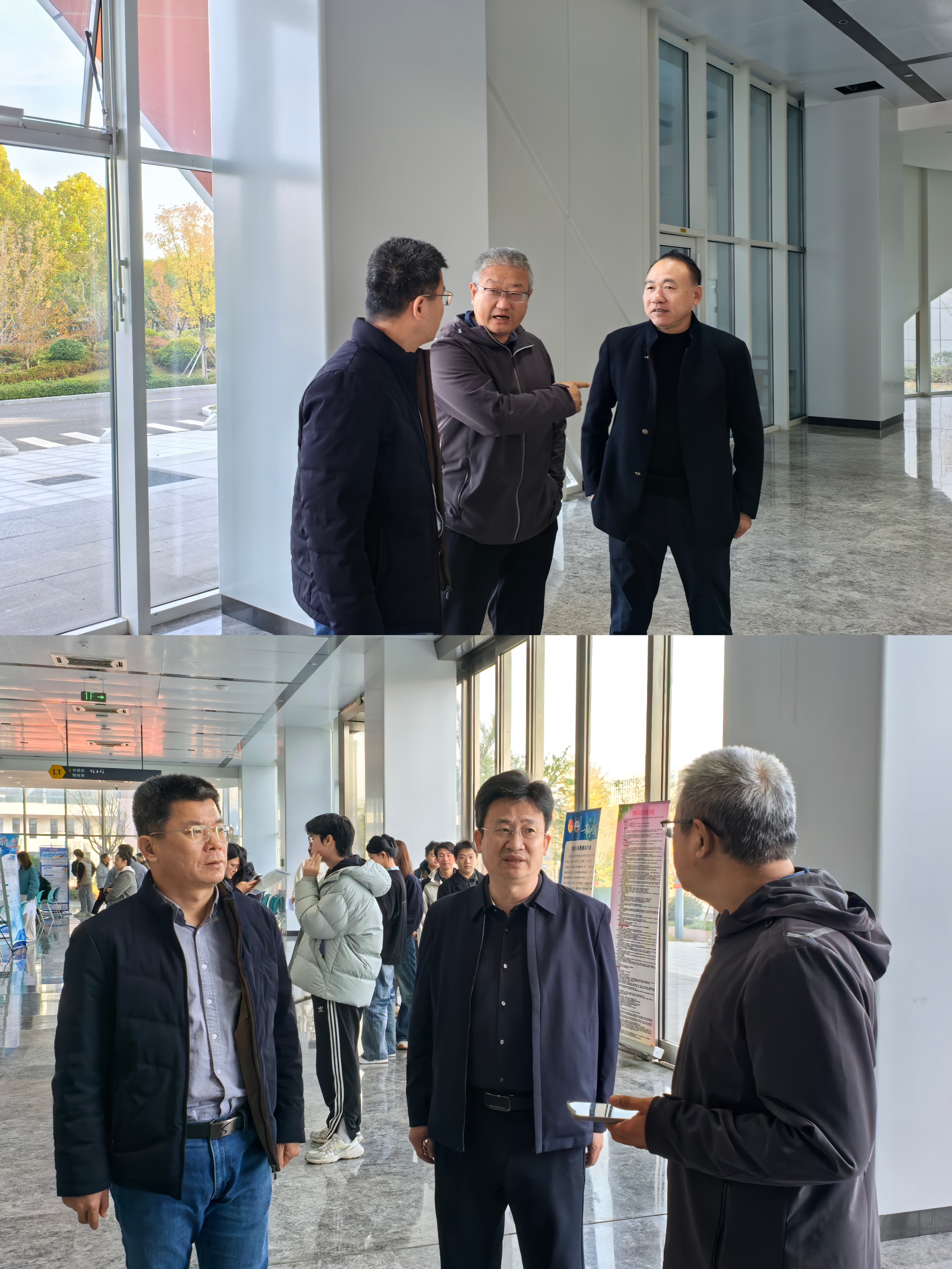 双选会现场,学校教科产融合学院常务副院长兼淄博教科产融合基地管理委员会常务副主任王锋业、学院党委书记郭永、党委副书记兼副院长刘名森、副院长陈为、副院长兼机器人学院副院长张伟、学院院务助理孙康等学院教师代表,毕业生辅导员徐文丽、马仁轩共同深入招聘现场,与用人单位代表面对面交流,详细询问企业发展规划、岗位需求标准及人才培养方向,重点推介学院2026届毕业生的专业优势与实践能力;同时与求职毕业生亲切沟通,了解求职意向与职业规划,为其提供针对性就业指导。招聘现场气氛热烈,毕业生们带着精心准备的简历穿梭于各企业展位,主动与企业招聘负责人就岗位适配度、职业发展路径、专业技能要求、薪资福利体系及晋升机制等问题深入洽谈,充分展现了学院学子扎实的专业功底和积极向上的求职风貌。