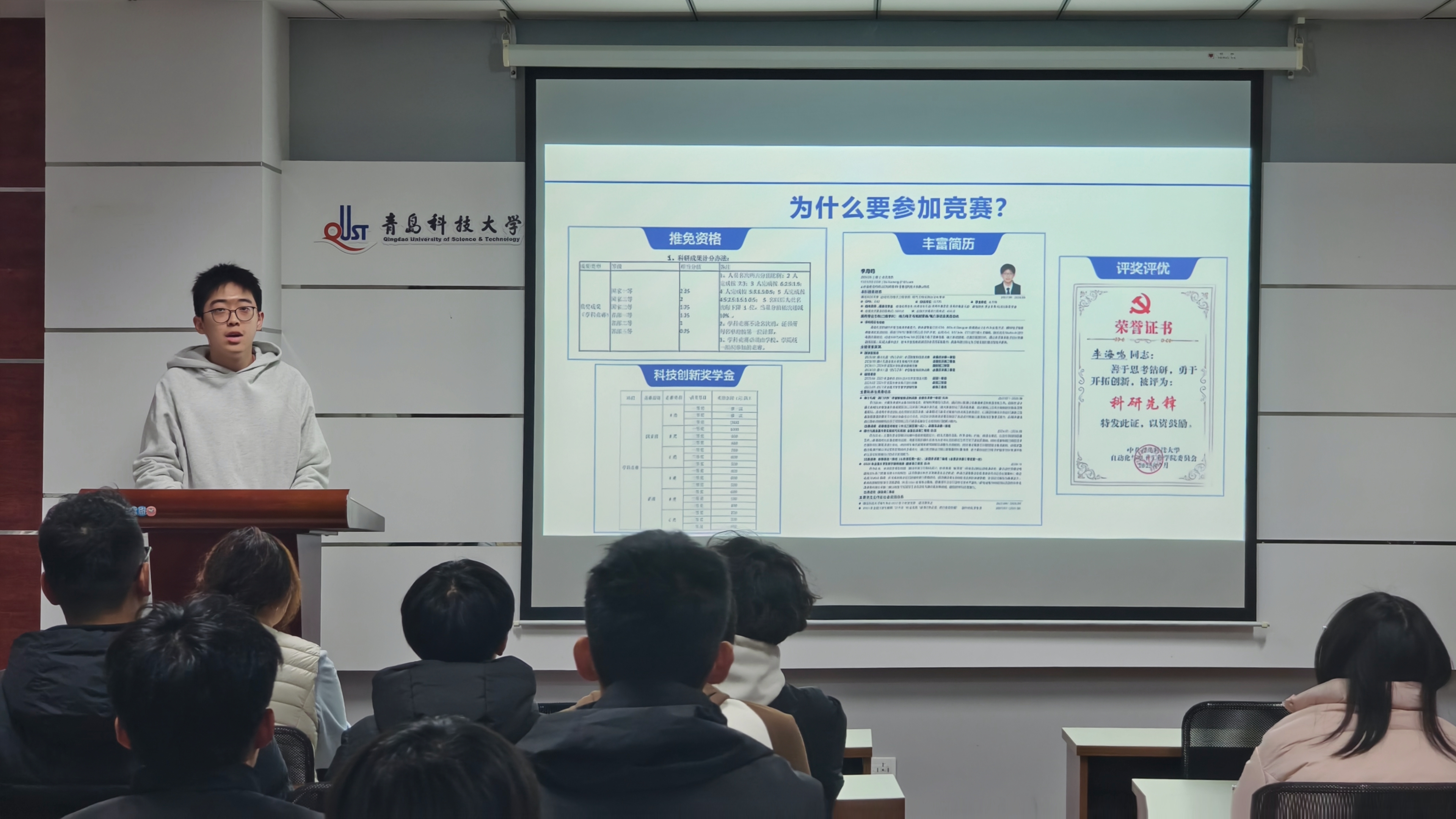 中国宇航学会专业会员、山东省深空自主着陆重点实验室成员,控制科学与工程2023级硕士研究生杨昀昊,聚焦学术科研能力培养展开分享。他围绕“学科竞赛与科研入门的衔接逻辑”“学术思维构建路径”等核心内容,结合自身科研经历解答同学们的困惑。他强调,学科竞赛是锤炼科研素养的重要载体,鼓励同学们以赛事为契机,培养严谨务实的学术态度与创新突破的思维能力。