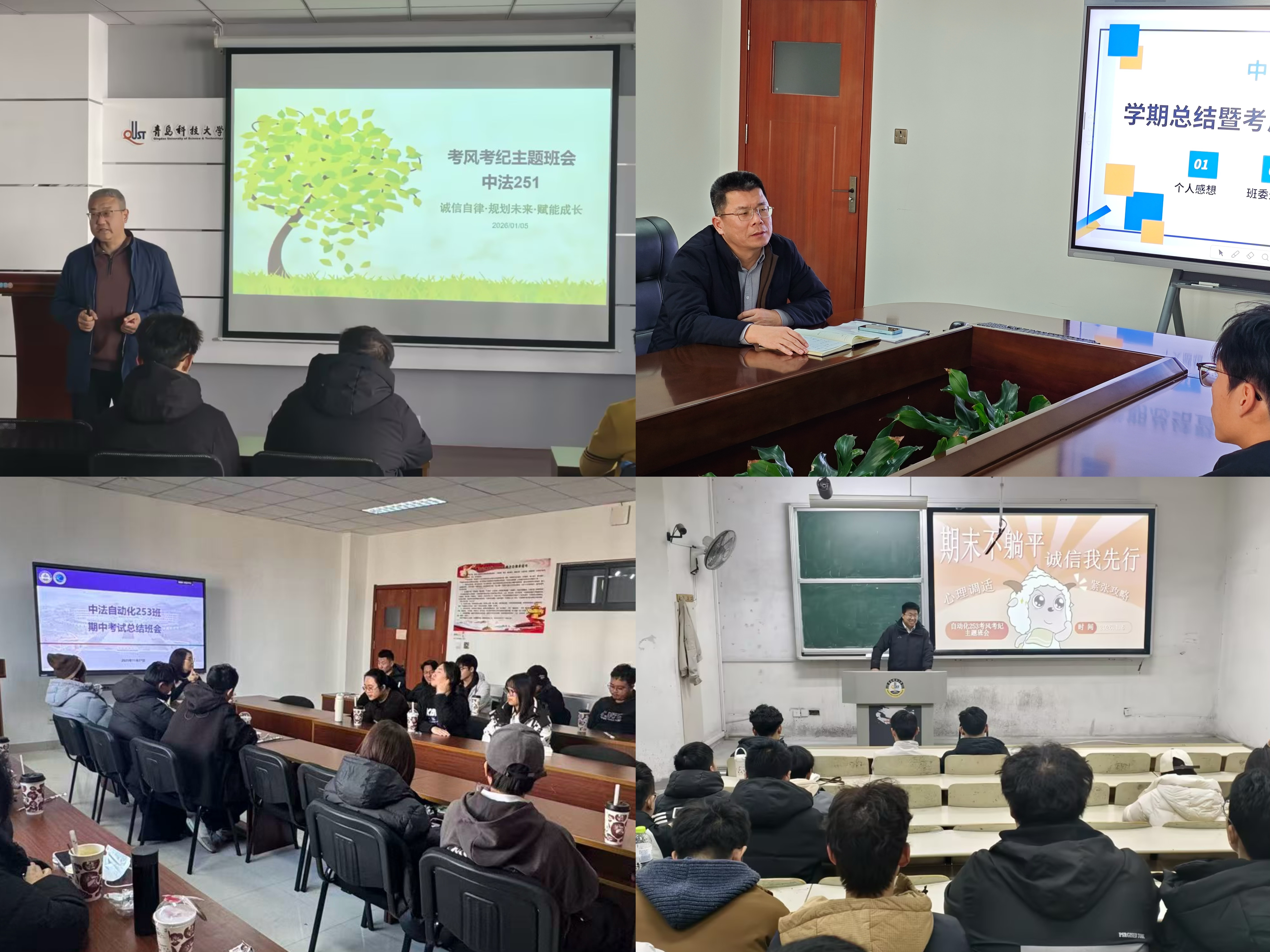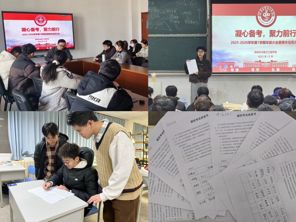 为深入落实学校《关于做好2025年秋季学期考风考纪教育管理工作的通知》(青科大学字〔2025〕46号)要求,切实维护考试公平公正秩序,强化学生诚信应考意识,自动化与电子工程学院统筹部署、精准施策,通过党政领导巡考督导、学工队伍教育引导、班主任及助理班主任深度参与、功能型党支部协同护航等举措,构建全链条考风考纪管理体系,夯实人才培养学风根基。