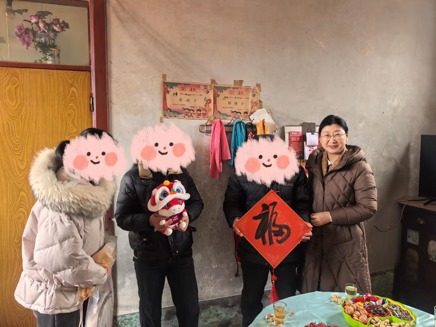交流中,王震十分关心学生的在校表现,细致了解其学业成绩、综合素质提升及参与校园活动等情况。学生向校长详细汇报了假期学习规划、学科竞赛备赛进展并现场展示了自主设计制作的科创作品,表达了对专业的热爱与对未来的憧憬。王震对学生自立自强、勤学善思的精神状态给予肯定和赞扬,勉励她要始终保持积极向上的心态,勇于直面困难、砥砺品格,深耕专业知识、精进科创技能,用优异成绩回报家庭、母校与国家。走访现场,王震为学生家庭送上了米面粮油等生活必需品以及“青科出品”的新春福字,徐华代表学校为学生送上专属保险。学院还特意准备了“AI自动化,做智行者”学生工作品牌文创卫衣、背包、马年吉祥物等特色礼物,让学生和家长在寒冬中深切感受到学校和学院的浓浓暖意与深切关怀。