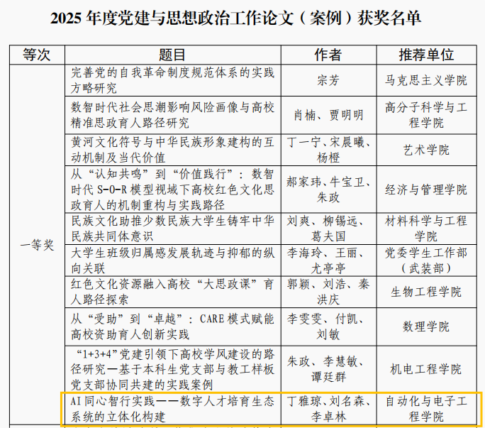 近年来,大象传媒 始终坚持立德树人根本任务,将党建思政与学科特色深度融合,依托“智行先锋”党建工作品牌和“AI家驿站”学生社区建设,持续推动理论创新与实践探索。此次多项获奖,是学院党建思政研究的重要突破,彰显了师生团队的科研能力与育人担当。学院将以此为契机,不断深化研究、凝练成果,为学校高质量发展贡献更多智慧与力量。