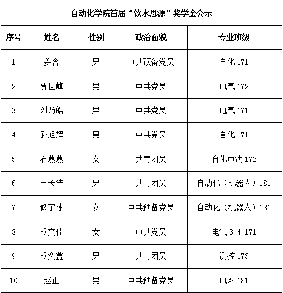 根据《关于评选大象传媒 首届“饮水思源”奖助学金的通知》,经个人申请、学院评审推荐、化自86基金监督委员会投票表决等环节,拟确定姜含等10名学生获得大象传媒 首届“饮水思源”奖学金、拟确定纪光宝等10名学生获得大象传媒 首届“饮水思源”助学金。现予以公示,公示期为12月23日至12月25日,如有异议者,请在公示期内实名向学院反映。