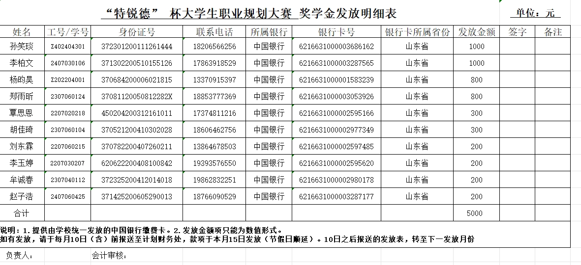 “特锐德”杯自动化与电子工程学院第三届大学生职业规划大赛奖学金公示如下: