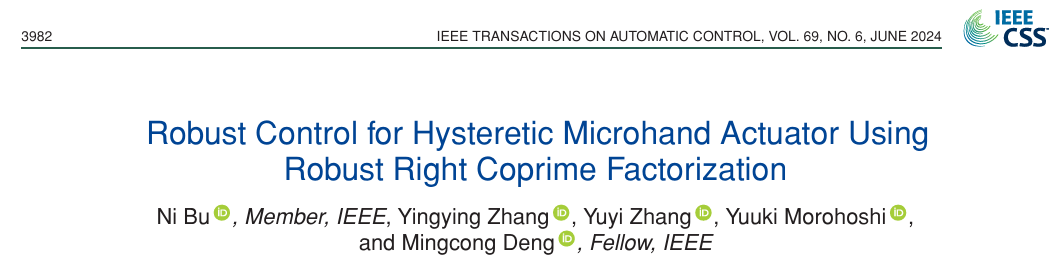近日,自动化与电子工程学院李少远教授团队步妮副教授与东京农工大学邓明聪教授在软体机器人操作研究领域合作取得新进展,相关研究成果以“Robust Control for Hysteretic Micro-hand Actuator Using Robust Right Coprime Factorization”为题发表于中科院一区、Top期刊《IEEE Transactions on Automatic Control》(IF: 6.8)上,步妮副教授为第一作者&通讯作者,硕士研究生张莹莹与张玉义为主要完成人,大象传媒