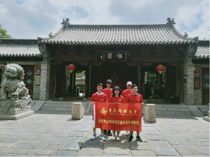 赴青州古城环境及建筑保护调研团的实践同学参观了冯溥的私人花园偶园,以及其子孙冯子履的府邸—存诚堂。在参观过程中,实践队员们了解到了冯氏家族对青州建设的贡献,也欣赏了冯氏家族的现存古文物。队员们对文物保护的感触颇深。