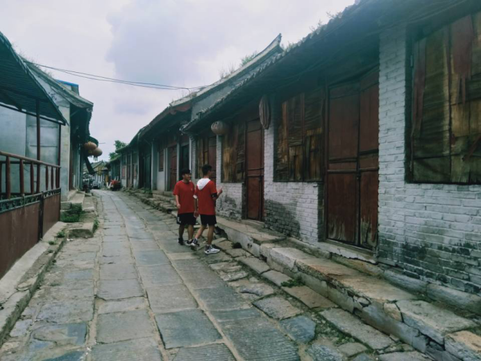 实践队员们来到昭德古街,感受到了当地回民的热情好客。在这里,古老的店铺和民房错落有致,青砖小瓦,古式的木质活插板门,依稀可见当年这里商贾云集、游人如织的繁华。与市府大楼接邻的北门街,是条青石板古街,街旁多为仿古建筑,开设的古式店铺,内有古玩、字画等。店铺前有出檐的梁柱和明代特有的弯脖斗拱,古老的窗棂和斑驳陆离的木门,显出街道的古老和沧桑。