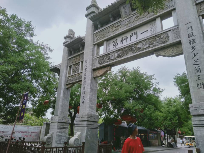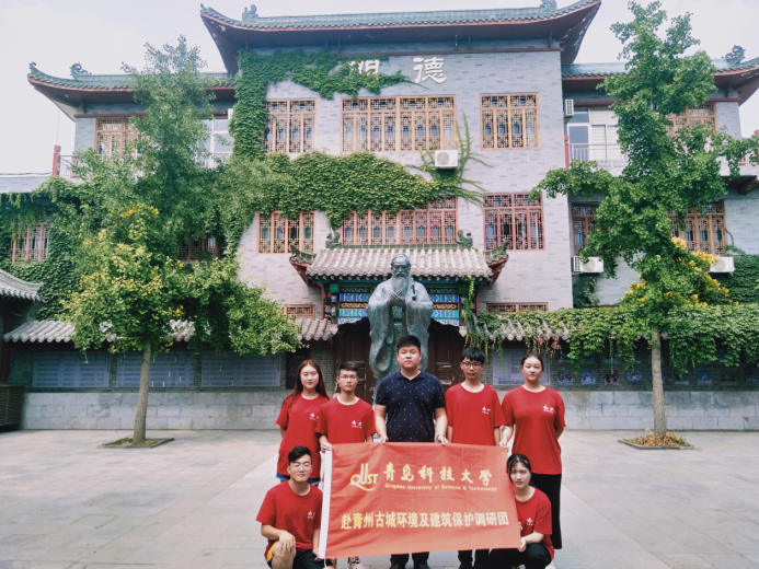 实践队员们还参观了青州古街的南门大街,看到了一门科第坊,也是冯氏之坊,立于明万历年间。当时,青州的冯氏世家出了6位进士,3位举人,真是一门科第,很值得彰表荣耀。实践队员们对于这种“家学相承”的家风感触颇多。而“大宗伯”坊是始建于明嘉靖年间,为旌表青州历史名人陈经的。在这个不远处,实践队员们还看到一棵十分高大的槐树,并且进一步了解到,该古槐植于宋代,树高10米,冠丛直径10米,树围4. 7米,树龄约1000年,为偶园街区内重要的历史标志物。青州地区栽植历史悠久,现存古槐400余棵,明代及明代以前的约占一半,树龄最长的为宋代。