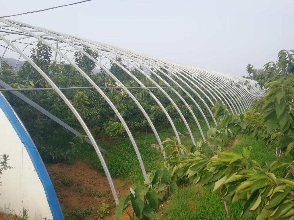 该大棚是“沂水县百园提升工程示范园”,区园面积达到260亩。种植品种丰富,有美早、布鲁克斯、萨米脱、红鲁比等。技术水平领先,包括保护地培养、宽行密植、绿色防护、节水灌溉、主干式整形等一系列种植技术。种植过程中还有专家指导,高级农艺师张廷宝、工程师武传果都是该示范园的指导专家。园区基础配套齐备,培训服务到位,技术水平领先,果园管理整体水平高,果品优质高价,示范效果非常明显。并且该示范园是党员先富带富示范基地,秉承先富带后富,最后走向共同富裕的宗旨。