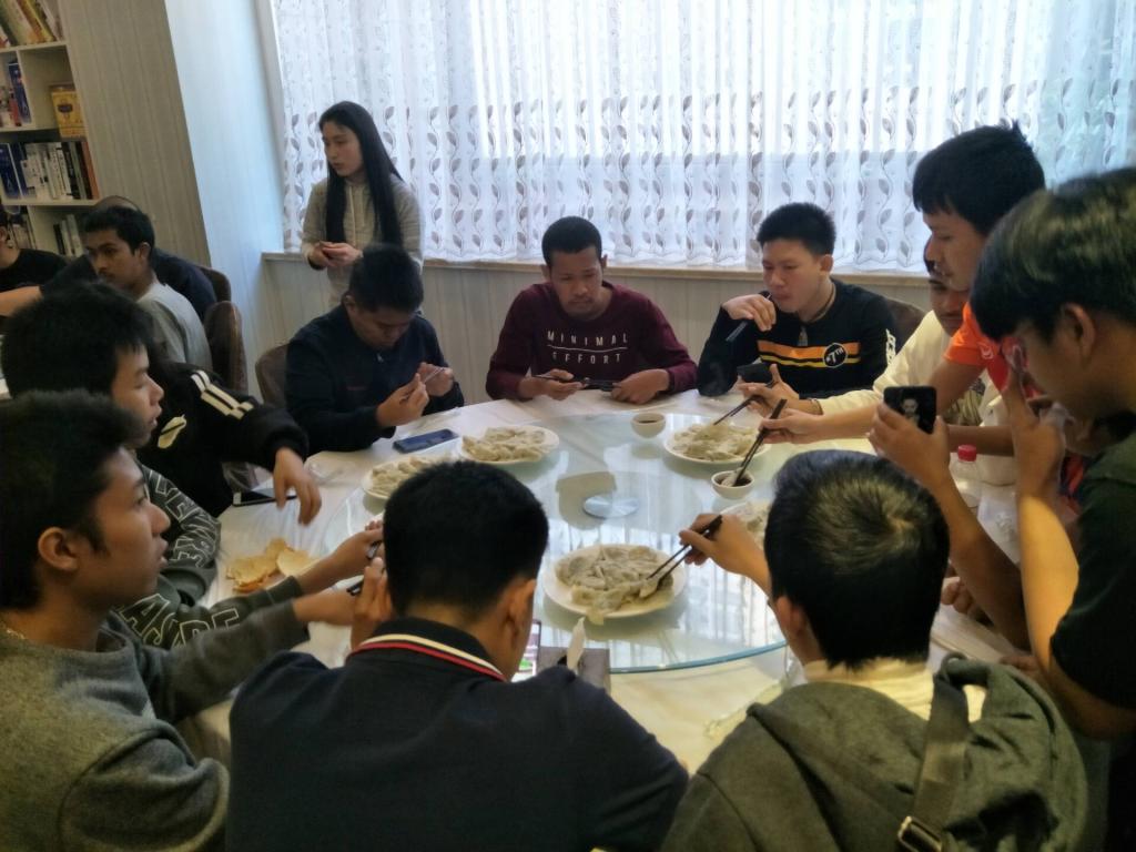 的同学们与留学生开展了一场别开生面的联谊活动——以包饺子的方式让留学生感受到家乡节日的气氛,同时借此机会促进中泰同学之间的交流,增进双方友谊。