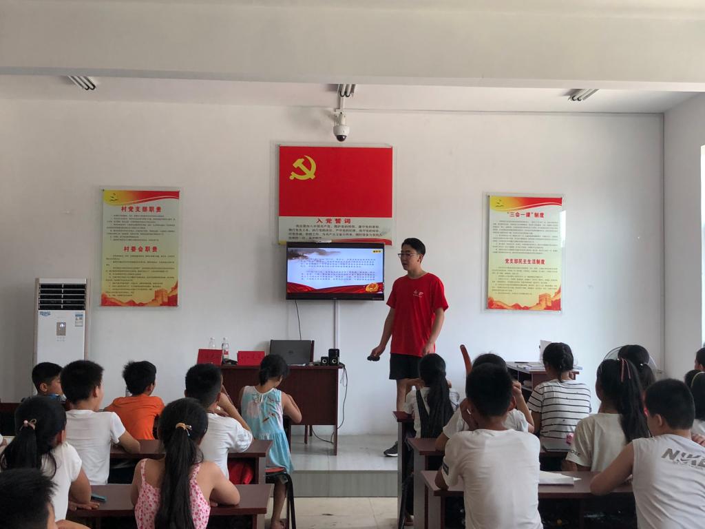 支教队员刘明哲通过讲述理论知识,向学生介绍人民军队的建立,让学生们明确自1927年八一南昌起义后建立了人民军队,因此将每年的8月1日作为我国的建军节;他还向同学们讲述了从1931年九一八事变到1945年9月2日日本正式签署投降书的14年抗战历史,希望学生们能够时刻牢记历史,勿忘国耻。此次支教还引入影像教学,通过播放2015年9月3日在北京天安门举行的纪念中国人民抗日战争暨世界反法西斯战争胜利70周年阅兵式来引导学生对中国人民解放军有一个更为直观的印象和认识,相信孩子们通过国防教育课已能够初步了解人民解放军的强大以及中国为维护世界和平做出的贡献。