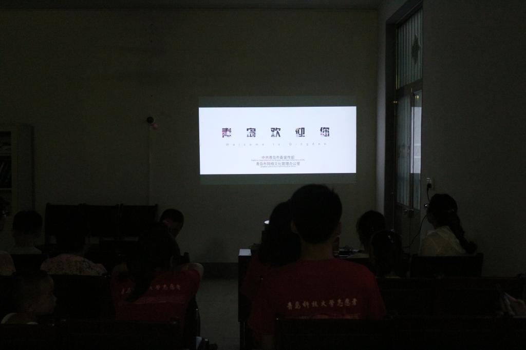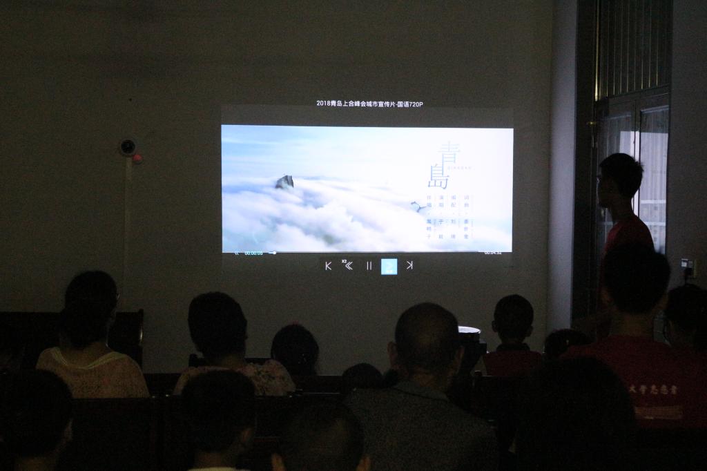 青岛是中国帆船之都,亚洲最佳航海城,世界啤酒之城,联合国“电影之都”,全国文明城市,被誉为“东方瑞士”欧韵之都、“中国品牌之都”。2018年上合峰会在青岛举行,提高了青岛的知名度,让青岛逐渐成为国际化的大都市。为让孩子对青岛留下美好的印象,调研团在村委会放映了“美丽青岛"的宣传视频,并结合上合峰会讲解了近年来青岛的飞速发展。