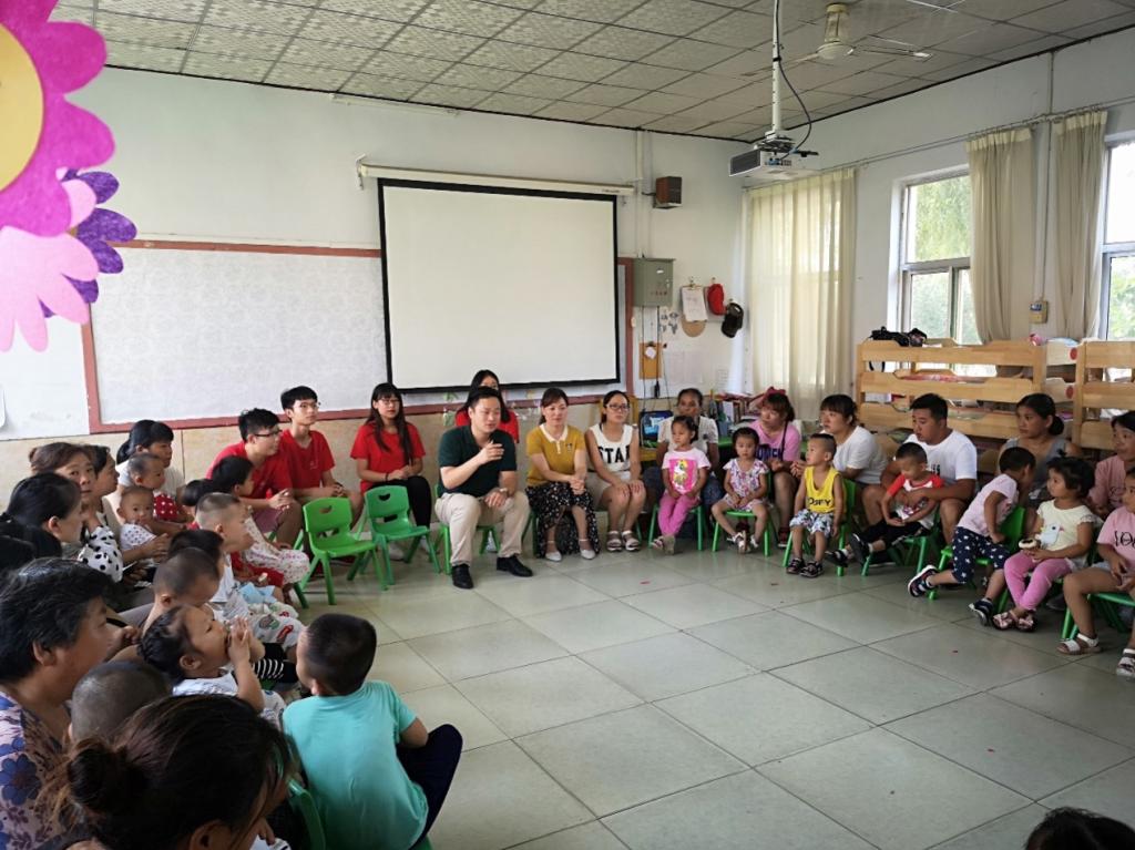 辅导员刘海波老师、关爱团全体成员、幼儿园学生及学生家长,座谈会由关爱团成员姬生宵主持。