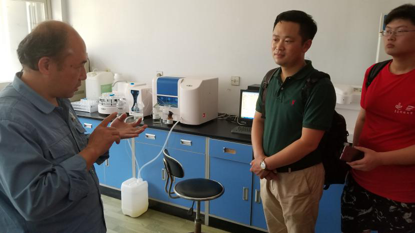 随后调研团走进检测水中含碳量的实验室,黄斌首先为队员们详细地介绍了有机碳与无机碳的定义以及区别,接着又简捷讲述这台机器是如何检验出相应的碳含量:在检测时会先测量出总碳量与无机碳量,相减便得到有机碳含量。