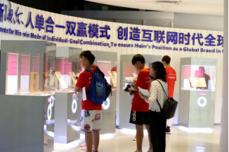 通过工作人员的讲解和现场观看海尔发展纪录片,调研团了解到,在1984年,两个濒临倒闭的集体小厂合并成立了青岛电冰箱总厂,并由当时担任青岛市家电公司副经理的张瑞敏先生出任厂长。张瑞敏上任不久,发现厂里生产的76台电冰箱不合格,他让全厂职工轮流参观后当众宣布:由生产这批产品的直接责任人亲手用锤子砸毁这些冰箱。这件事在社会上引起了强烈的反响,人们一致称赞张瑞敏处理问题的气魄和狠抓质量的决心