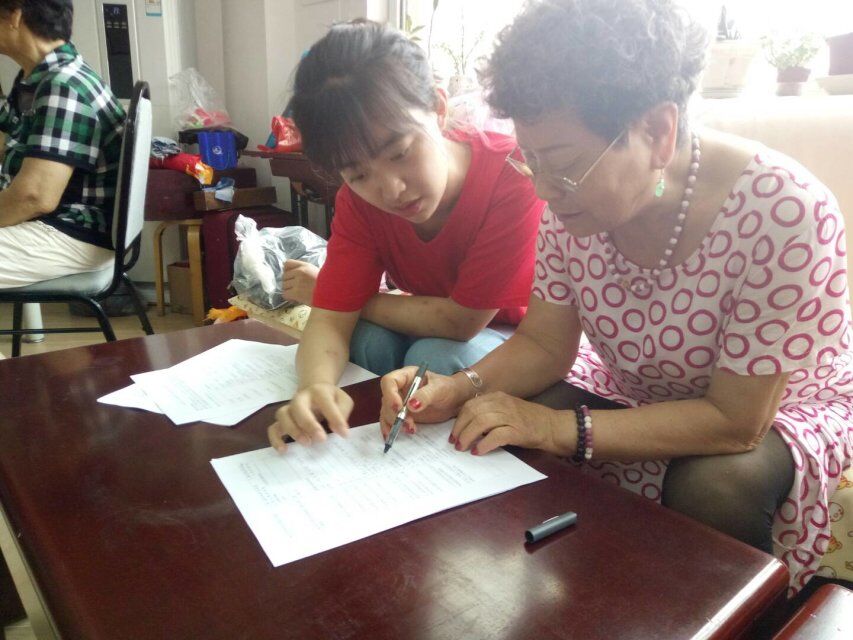 问卷主要关注内容包括老人对福利的需求、对服务环境的满意程度等。在问卷填写过程中,老人们普遍表示出对于情感回馈的渴望较大,经济物质满足反而是次要的,尤其是独自居住、子女务工相隔较远的老人,她们最希望有人陪着聊聊天。老人们对于幸福中心的服务绝口称赞,都说是真的用心、贴心,老人们来到这里可以学习唱歌、书法、舞蹈等文体活动,幸福中心还提供按摩推拿等日间照料。除此之外,她们会普及对于三高和糖尿病等疾病的预防知识,当老人身体健康出现问题的时候,陪伴最多的往往是幸福中心的同事们和志愿者。当问卷涉及到子女看望的问题,老人也都对孩子工作忙表示理解。但是中心时常有青年志愿者们来到此开展趣味活动,老人们表示并不寂寞。调研团还询问了老人们的身体健康情况、检查频率、就医地点,以及娱乐设备需求等多方面的问题,问卷调研涵盖范围较为全面。