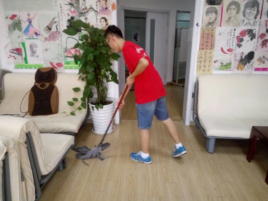 奔赴幸福中心以后,调研团成员们先陪老人们唠唠嗑,得知一会要开舞蹈课和布艺制作课,休息喘匀气息以后,志愿者们跟随负责人杨晓玲前往室内进行内务整理。活动室的一侧,摆放着老人们平时的作品,有纸巾盒,小动物形状的冰箱贴,还有用碎布头做小布偶,袜子改造的小手套等等。志愿者们纷纷表示,走过了一个时代,老人们仍旧不乏想象力和创造力。除了例行扫地和擦桌子,志愿者们将老人细心栽种的花浇水松土,并且将每个花盆擦拭干净并简单装饰了一番。除此之外,幸福中心会为一些行动不便的老人提供上门服务,实践团成员商量以后,分组前往四位老人家中打扫卫生。打扫之余,陪老人说说话,老人们显得很开心。后面的时间里,志愿者们还参加了帮写回忆录的活动,聆听老人们的故事,大家内心也颇有触动。