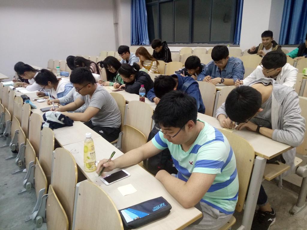 下午7:00活动准时开始,孙晗松首先带领同学们观看了有关五四爱国运动的影片。影片还原了当时具有先进思想的学生、老师、社会人士游说演讲、传播巴黎会议情报的情形。怀有爱国热情的学生们写字状,喊口号集体上街游行,抗议卖国辱权的条约,捍卫中国主权与领土完整。趁着大家的情感还沉浸在坚定不移维护国家的权与法之中,主持人紧接着播放了讲论法制与法治、人治与法治的内涵、区别与发展的讲坛片段,同学们意识到了当今社会主义民主制度的优势和完善来之不易。影片结束之后,大家纷纷动笔在纸条上抒写心得体会,最后将纸条贴在黑板上互相分享并交流自己的爱国格言。