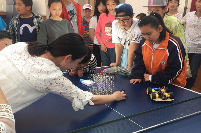 特色的电子科技产品,并且演示与讲解双管齐下。其中包括“红外线避障车”、“电子飞机”、“灯立方”、“点滴计时器”等,均是由大象传媒