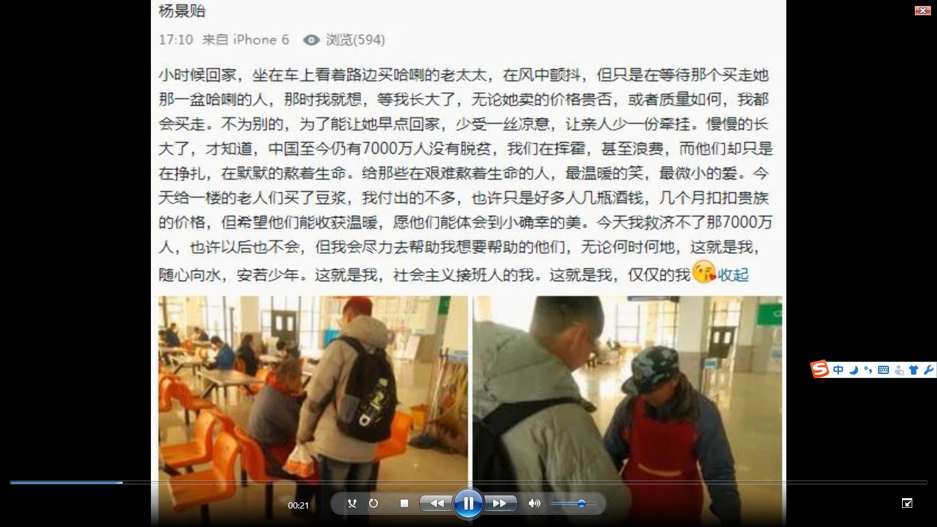 主办、电气151班承办,近百名同学积极参加了本次实践活动。其中,杨景贻、张伟南等同学在餐厅帮助保洁人员清理卫生并为他们送上关爱;杨文泉、张琳辉等同学勤工助学,帮助老师管理日常事务;李鑫同学积极参加社会公益活动;朱仲冠、吴治国等同学认真参加科技创新、职业生涯等讲座;孙文治、于淼等同学坚持每日学习、锻炼身体;还有同学去流浪猫狗收容所、观看爱国视频、与父母老师倾心交谈等。总之,同学们不仅用丰富多彩的活动方式展现了我们共产主义接班人的风采,而且还结合自身经历与体会写下了对做好共产主义接班人的深刻认识和理解,并在QQ空间、朋友圈、微博等网络平台上进行了广泛的宣传,感染了更多的人。