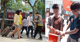 自动化与电子工程学院测控1、2、3班的28名同学在台东步行街集结,他们手拿《青岛早报》、《青岛晚报》,向过往市民介绍“微尘”基金并进行报纸的爱心义卖。尽管当天青岛的气温较高,但依然无法阻挡青科大“微尘”们奉献爱心的热情,他们踪迹遍布台东步行街。前来购买报纸的有行色匆匆的上班族,有在此地遛弯的老者,还有带着孩子的年轻父母,甚至他们有的只是捐出善款不要报纸。他们充分肯定了青科大学子的志愿服务精神,对爱心义卖活动给予了高度评价,并纷纷表示此次活动加深了自己对“微尘”基金的了解,在今后的生活中将尽己所能做岛城的一粒“微尘”。
