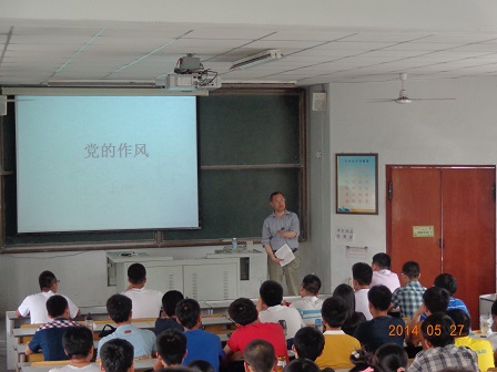 鞭策大学生努力学习奋斗,增强大学生的爱国热情和振兴祖国的责任感和使命感,对学生党员有重大教育意义。刘同刚老师主要向同学们讲述了中国共产党的组织规则、纪律和党风。让同学们深入了解党的先进性,党员的模范带头作用,党的严明纪律、钢铁一般的方针政策等,为学生党员的素质及党性修养的提高奠定了坚实的基础。同学也珍惜这次学习的机会,努力让自身向党组织靠拢,认真学习党章及相关的党的理论知识并且结合实践,做到理论与实际相结合。
