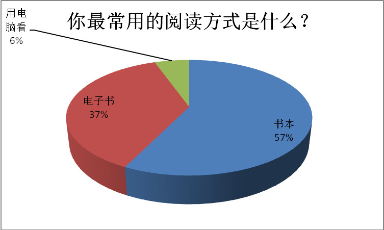 4.随着电子设备的普及,电子书日渐成为我们读书的方式之一。虽然57%人仍然选择以纸质书本的方式阅读,但是37%的电子书阅读方式也不能小视。也许在未来几年内,电子书的阅读比例还会增长。