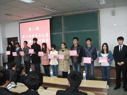 的学生会全体成员参加了此次大会。大会分为三个方面,首先,第十届学生会主席田永康总结了上学期学生会的工作,指出了学生会的工作方向。随后,史秘书长宣读了“十佳干事”“优秀个人”“优秀学生干部”的名单,并进行了颁奖表彰。最后,崔书记进行了总结性讲话,他首先代表学院祝贺表彰同学,然后对学生会的工作提出了三点希望:一克服困难,形成新的工作模式;二是要做好学风建设,积极探索方法,掀起学习的热潮,并提出了建立学习自律组织的期望;三是做好老师助手,做好学生稳定工作,真正的为老师分忧。团学干部培训会上,刘书记提出自动化专业是当今社会的一个热门专业,就业前景广阔,同学们要把握住时代的机遇,刻苦奋斗、提高学习的积极性,为将来就业打好坚实的基础。同时,刘书记还希望同学们在思想上严格要求自己,在政治上要有所追求,在业余时间培养兴趣爱好,锻炼各方面的能力,争做全面发展的当代大学生。