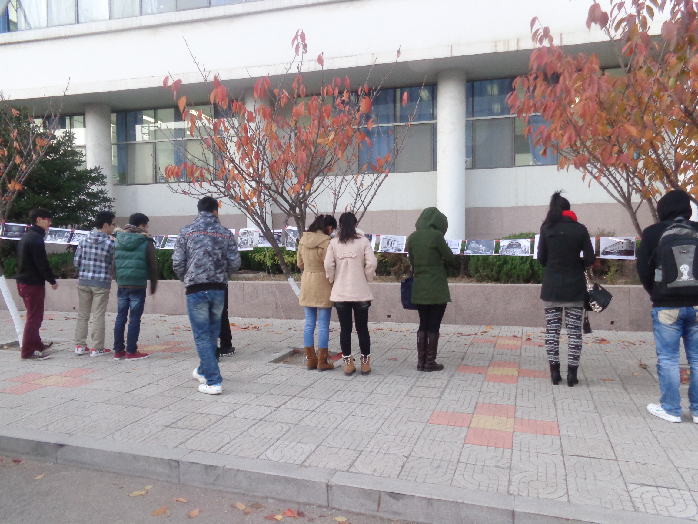 下午3点,协会干事按照计划在弘毅楼一侧布置现场。本次活动采取悬挂照片、文字说明的方式开展,目的是通过一些历次中共代表大会的珍贵照片,向同学们展现中国共产党带领全国各族人民建立中国特色社会主义的历程。这些图片涵盖从“一大”到“党的十八大”,分为十八个模块,每个模块前有关于此次大会的具体介绍,并且每张图片都附有简短的文字介绍。观看的师生不仅能从这些图片了解历史知识,还能加深对“党的十八大”中一些政策、改革方向的理解。在图片布置完成后,引起很多师生的兴趣,纷纷认真观看。
