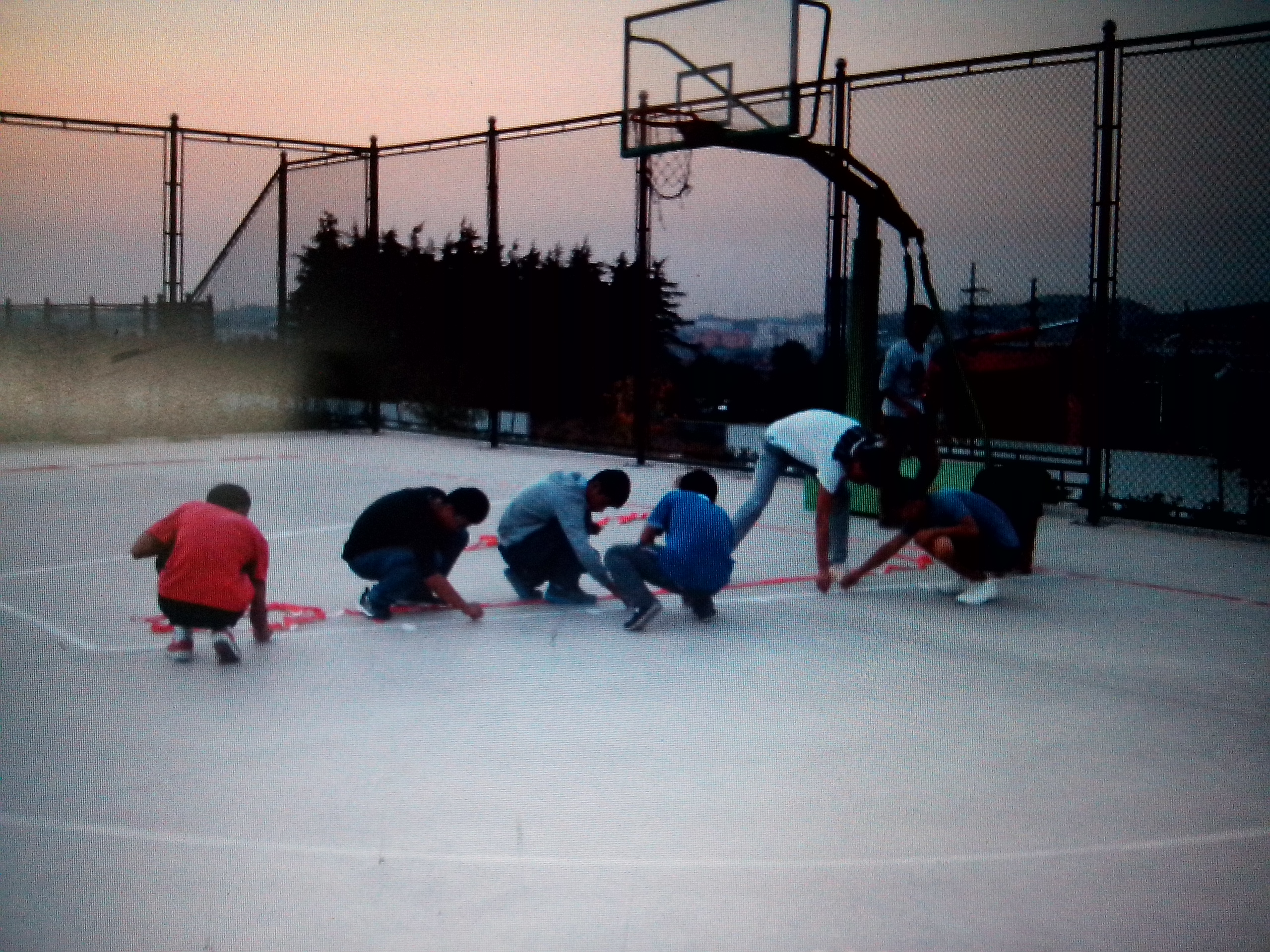 学生会副主席兼体育部部长隋严文带领体育部成员对篮球场进行了全面的改造。场地上没有三分线,他们便用粉笔画线;没有界限,他们便把红色的条幅剪成线条,用胶带粘在地上,以此作界。终于,操场在他们的努力下,焕发出新的光彩,笔直的红色界限将操场清晰的分成几个区域,纯白色粉笔线清楚标明着投球得分地点。今日早上,粉笔线在风吹日晒下变淡,同学们再次画线;一上午比赛结束后,同学们又进行了第三次画线……比赛所需要的记分牌也是由大象传媒