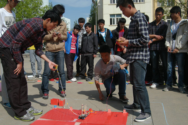 “我们这次比赛非常环保、节约,机械车都是由废弃的玩具车改造的,只保留了马达和底座。”活动策划人史翠翠介绍说,比赛主要测试赛车完成的速度,机械臂的灵敏度等。参赛机械车由选手自己制作,筷子、广告硬卡片、瓶盖、废弃剃须刀的电机等各种常见材料都被派上用场,各显神通。“卧虎藏龙队”队员刘长龙、韩虎说,准备这些材料一共花了不到10块钱,大家的创意也都表现出来了。