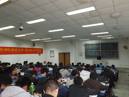 于2012年12月4日下午在崂山校区举办主题为‘树自化榜样之风,扬自化学子风采’的学习榜样报告会。2012级大象传媒