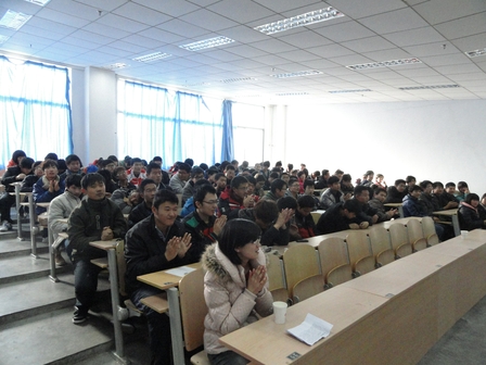 学生会根据大学新生学习目标不明确、学习热情不够高涨的情况,在崂山校区举行了大学生学习榜样报告会。学生会成员、大三的优秀学生和全体大一新生参加了这次报告会。