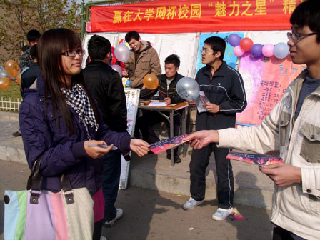 文艺部发起的青科大“赢在大学网杯”——“魅力之星”精品节目PK大赛活动,在小五四北开始正式报名。此次活动由大象传媒