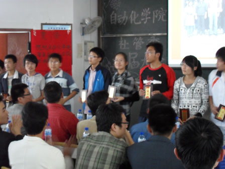 社管委上届主席王卫庆同学对上一学年工作进行总结。首先肯定了上一年社团活动取得的优异成绩,举办的一些精品活动,同时对社团建设做出了建议。接下来现任主席刘文龙同学对社团建设提出了自己的看法,希望大家能合作创新,进一步扩大学院社团知名度。接着由出席大会的领导老师为上一年优秀干部和优秀干事颁发证书,肯定了他们为社团工作做出的努力和贡献。由肖强老师为赵玉言老师颁发聘书,负责指导社团建设和工作的开展。接着,校社团联代表王贵凯同学宣读大象传媒