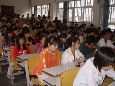 刘老师演讲过后,一位优秀的大三学长又结合自身的经验,给同学们提了一些建议。他说,只要大家跟这样老师的题型走,想挂科都难。他还给同学们介绍了怎样学好英语,如何对待社团活动,以及奖学金如何发放等问题。通过学长的演讲,大家对于大学生活不再感到迷茫。