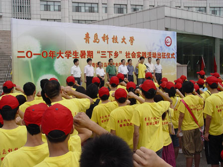 我作为社会实践团的普通一员,很少有机会参加如此隆重的宣誓活动。罗校长站在主席台上面向我们,各个实践团的代表在台上扛着自己鲜红的队旗,红色的队旗下映衬着一张张热情洋溢的面孔,这让我想起红色革命时代火一样的热情。是的,我一定会带着饱满的热情开赴潍坊,全心全意为人民服务,认真完成各项实践任务。带领宣誓的是一位女生,她吐字铿锵有力。宣誓誓词挺让我激动万分,一想到让我神往的实践基地就忍不住心潮澎湃。我想到基层去,去看一下我将来要从事的岗位,去体会一下工人汗流浃背地干活的艰辛。现在我宣誓,我宣誓以积极的心态,用青春演绎精彩,用成绩回报社会。