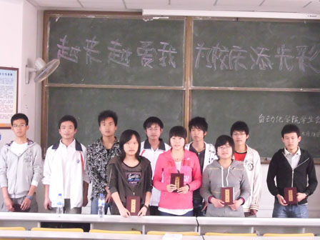 参加此次比赛的共有十名选手,他们以大胆的创新,独到的见解,顺利进入了此决赛。下午两点,比赛正式拉开帷幕。首先由主持人解读了本次大赛的意义,介绍了到场的嘉宾,强调了会场纪律。接着。十位选手分别上台详细讲解了对举办六十年校庆活动的看法,并提出了最好的建议和想法。有的选手侧重于诚信方面,希望借校庆,来促使“人人讲诚信,个个讲文明”良好学风形成。有的选手则提倡举办“不失自动化特色”的趣味活动。风格不一,各有千秋。最后,李云超同学以她大胆的想象获得了本次大赛的冠军。另外,大赛设有二等奖两名,三等奖三名,优秀奖四名。所有获奖选手合影留念,到此,比赛圆满结束。