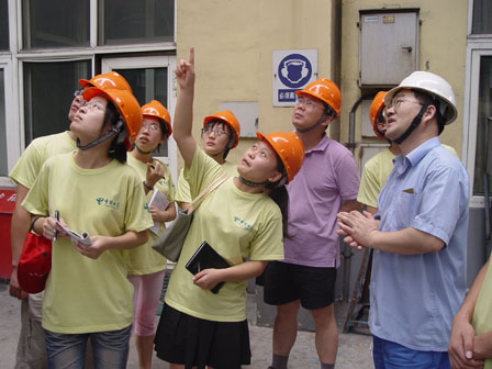 良达公司的郭经理把实践团带到了真正的锅炉生产车间时,大家大吃一惊,屹立在面前的已经不是同学们所能想象到的大,三个足有三十几米大的巨型复杂铁架把视线直接带到白云相接的地方。郭经理首先是给大家介绍了锅炉生产在整个发电生产系统中所占的重要地位,然后强调了锅炉系统的工作原理、维护和保养,重点给同学们强调的是现代锅炉生产设备的智能型、自动化以及它的环保性。大家很容易看到伫立在巨型锅炉旁边的是一座差不多大的净化环保循环系统,这让人不禁赞叹中国的环保型经济增长模式对于整个地球环保事业的巨大贡献。