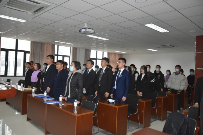 会议伊始,全体师生齐唱国歌。马寒在会议上提出对学生会全体成员的殷切期望,他表示正值青春年少的自化学子,应将勤学善思力行作为工作准则,坚定理想坚定信念,努力实现人生价值;并提出学生会成员要强化学生干部的群众意识、责任意识和奉献意识,发挥示范引领作用,为学校、学院作出自己的贡献。