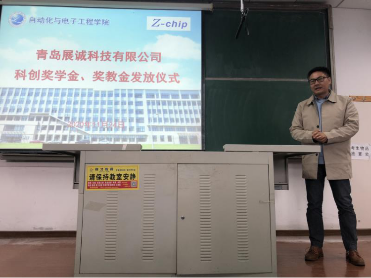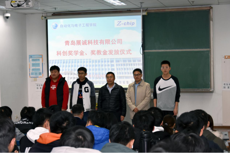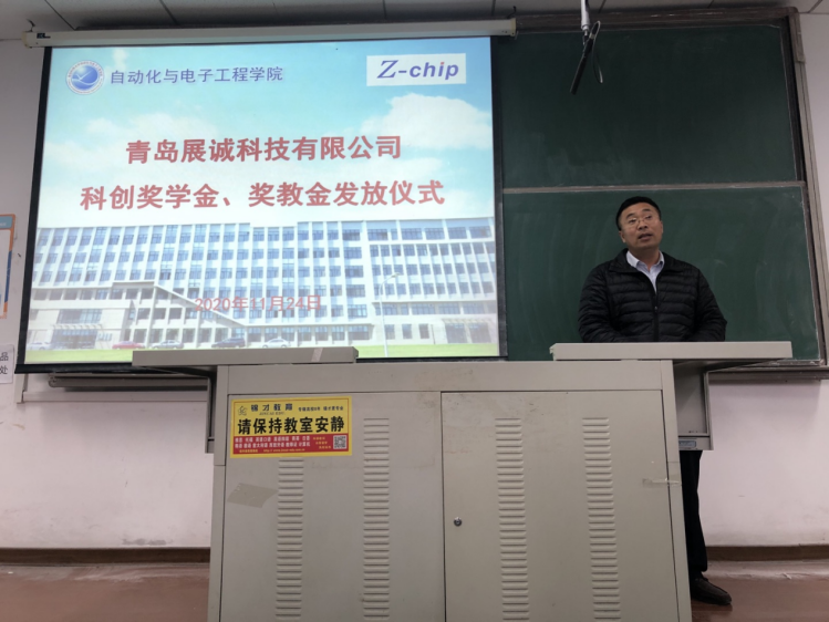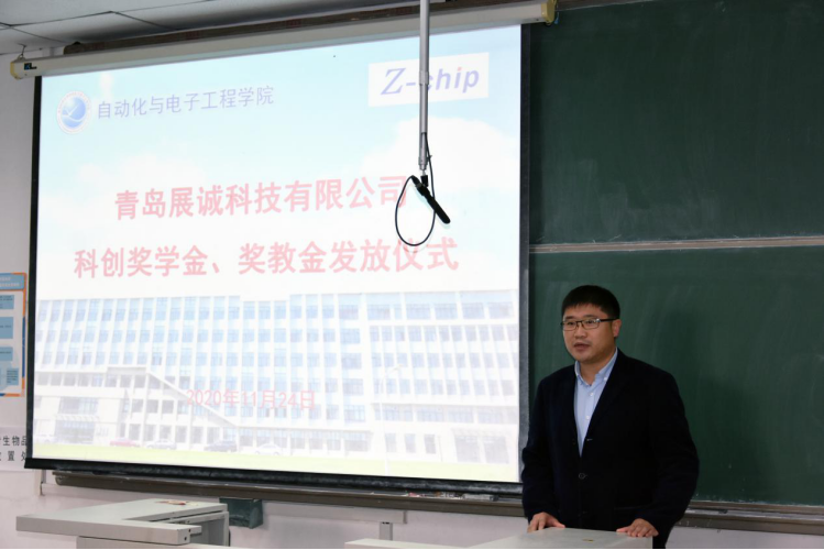 科创奖学金、奖教金发放仪式于11月24日下午在明德楼举行。青岛展诚科技有限公司总经理袁鹏飞、大象传媒