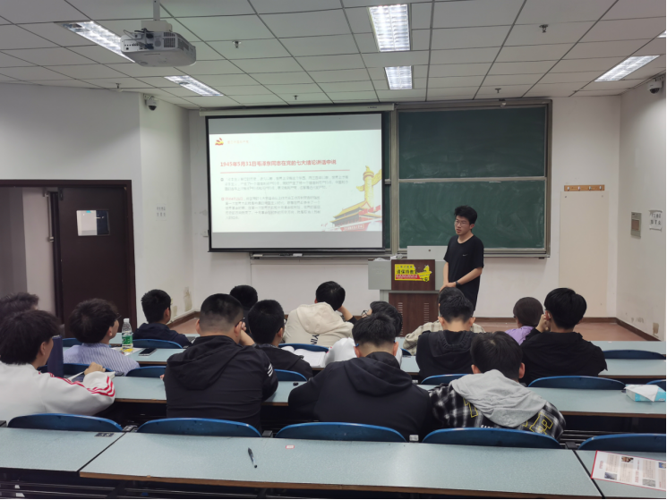 本次活动由团支部成员王海洋组织进行,通过幻灯片向大家展示了中国共产党百年发展历程。分别从中国共产党的建立、中华人民共和国的成立、改革开放和中国特色社会主义事业的发展三个时期讲述中国共产党的初心和使命。