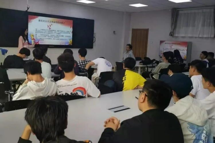 团支部副书记申文宇以课件展示的方式,就新民主主义革命的革命路线、历史特点、性质,提出了自己的看法与思考。随后,他总结了新民主主义革命时期我国的重大方针政策,并通过展示相关的视频资料,使团支部成员进一步了解整个新民主主义革命的艰辛历程,从而对当下所处时代的认知产生更深的思考。