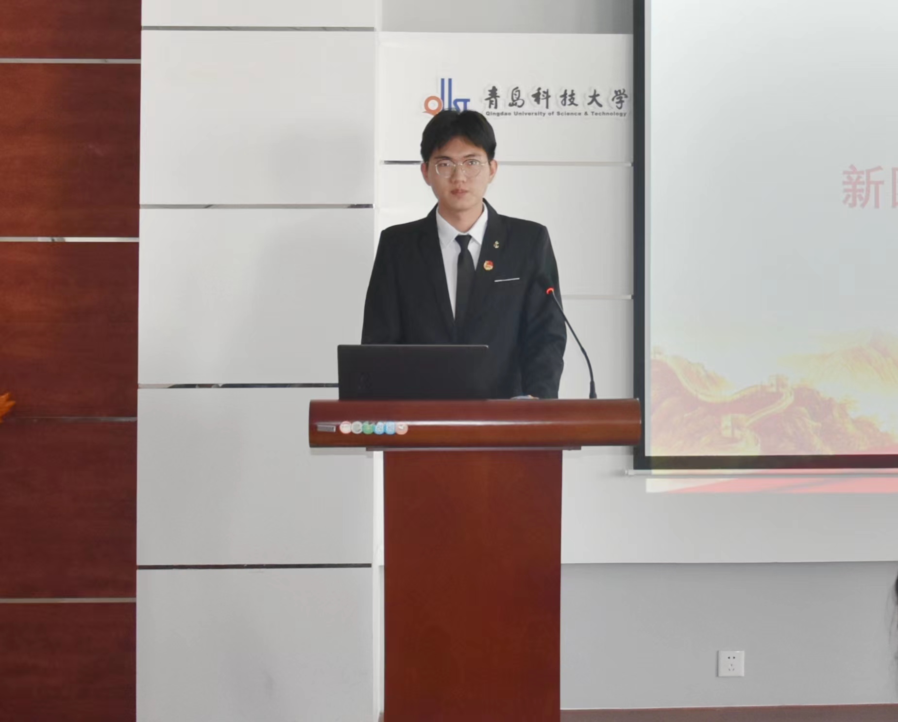 入团仪式在庄严肃穆的国歌中拉开帷幕。团委老师赵赪赪老师新发展团员名单,老团员代表为新发展团员佩戴团徽。全体学生在自化211班郝岩的带领下,面向团旗庄严宣誓。