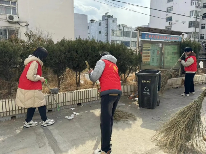 活动现场,青年志愿者们拿着工具分组合作,积极投身到社区卫生清扫活动中,忙碌的身影构成了一道道靓丽的风景线。同学们冒着严寒,不怕脏、不怕累,对乱堆乱放现象进行集中清理整治,使得社区环境焕然一新。志愿者们通过实际行动,向社区居民普及环保知识,解释垃圾分类的有效性,传递环保的重要性,在社区居民中引起了巨大反响。