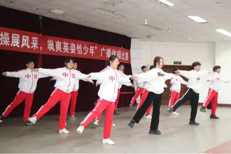 在南苑大学生体育活动中心举办“'自'家体操展风采,飒爽英姿恰少年”主题广播体操比赛。