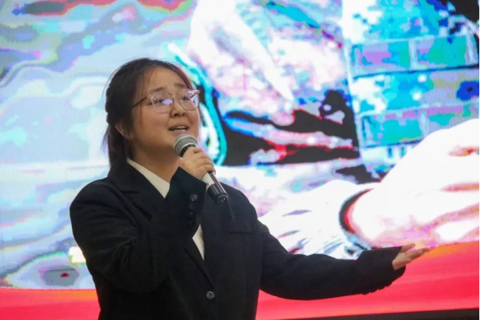 比赛现场,刘宇航用真挚的感情和丰富的语言生动地表达了对“五四精神”的理解和传承。她紧紧围绕“传承五四精神,担当青春使命”的主题,讲述了被联合国授予和平荣誉勋章的张钦、疫情时援鄂医疗队的00后护士刘佳怡和只有19岁的戍边烈士陈祥榕的感人故事,向现场的观众展示了五四精神在当代年轻人身上仍然光彩夺目,熠熠生辉。饱含深情的表达、铿锵有力的话语,让整个赛场激情澎湃、掌声不断,充分展示了大象传媒