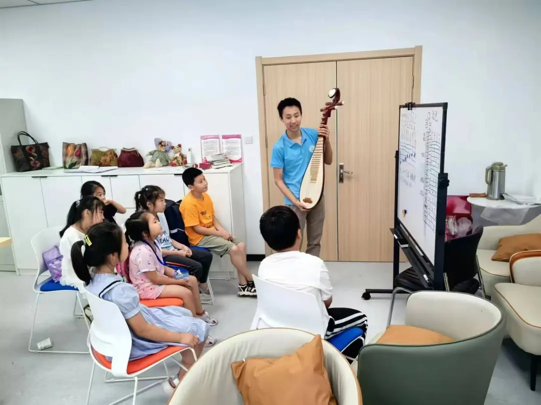 除此之外,志愿者还利用自身特长,教同学们琴棋书画。以琵琶为例,教给孩子们一些简单的乐理知识,让孩子们感受到琵琶声婉转如诗,像涓涓细流似幽咽。以象棋为例,感受“棋盘方正,纵横交错,楚河汉界,两分天下”的魅力,并且扩展讲述象棋背后源远流长的中国历史。